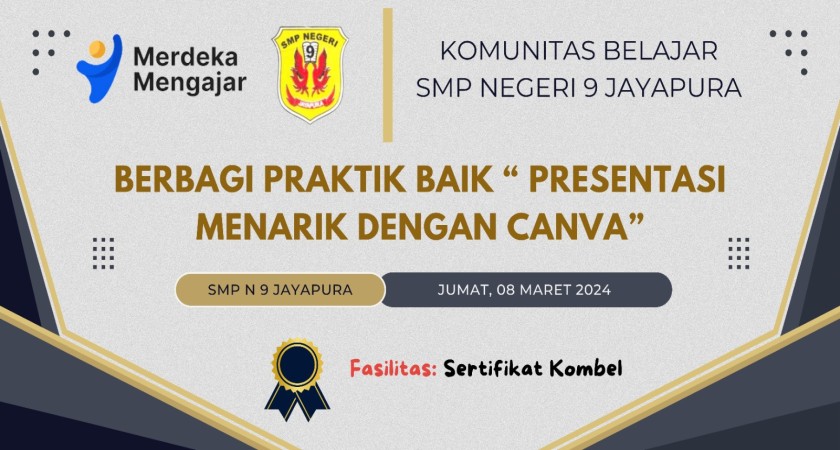 Komunitas belajar sekolah mengadakan pelatihan media pembelajaran yang bertujuan memberikan guru alternatif bagi guru dalam membuat bahan ajar. Kegiatan diikuti seluruh guru yang berada di Smpn 9 jayapura. Narasumber dalam kegiatan adalah kombel sekolah yang materinya di bawakan oleh Pak Amril Sidik, S. Pd, dengan judul membuat presentasi dengan desain canva, yang diselenggarakan oleh kombel sekolah yang telah ditunjuk berdasarkan SK kepaa Sekolah, dan belajar bersama teman sejawat, namun para peserta tampak antusias dalam mengikuti jalannya kegiatan.