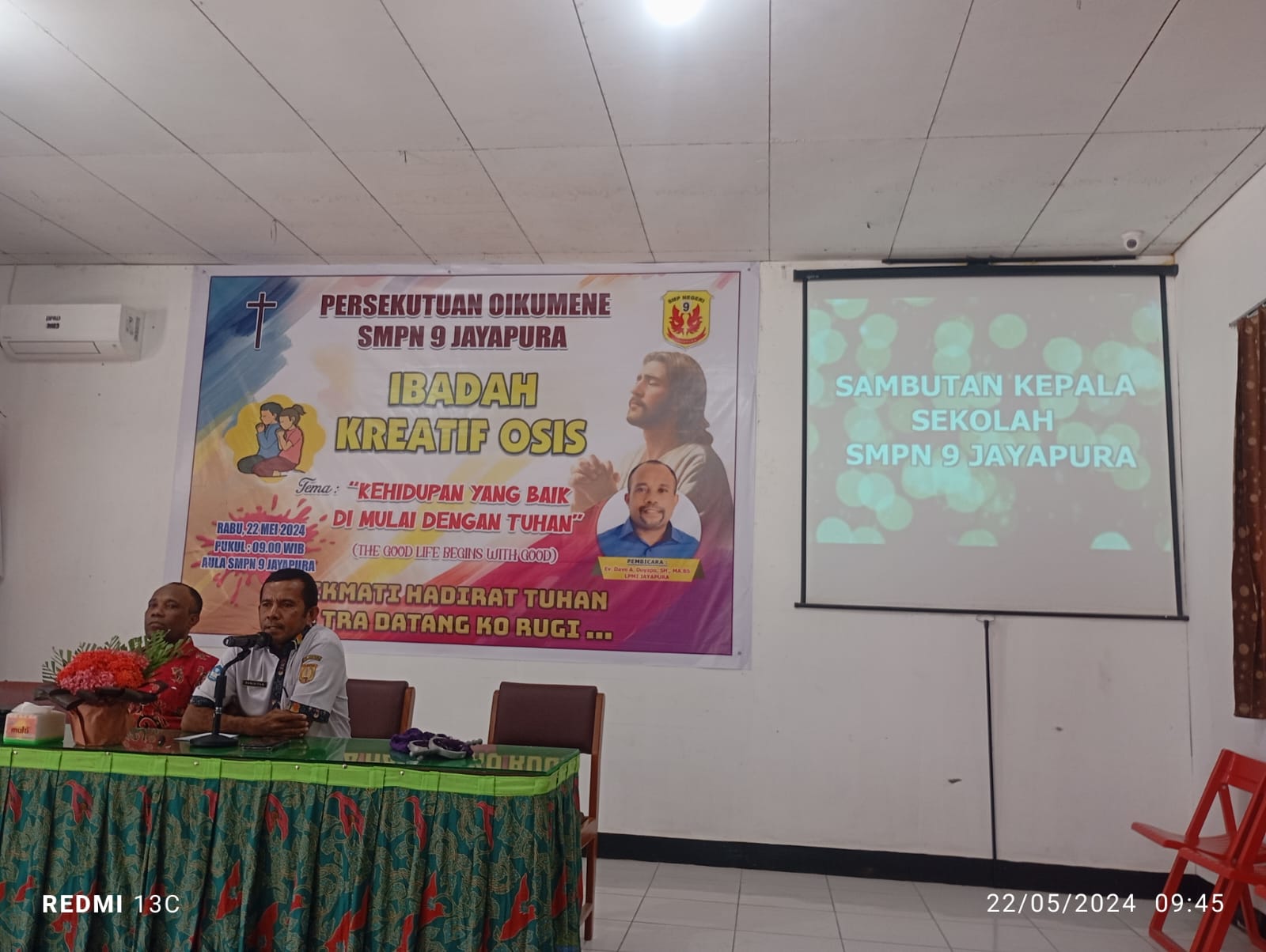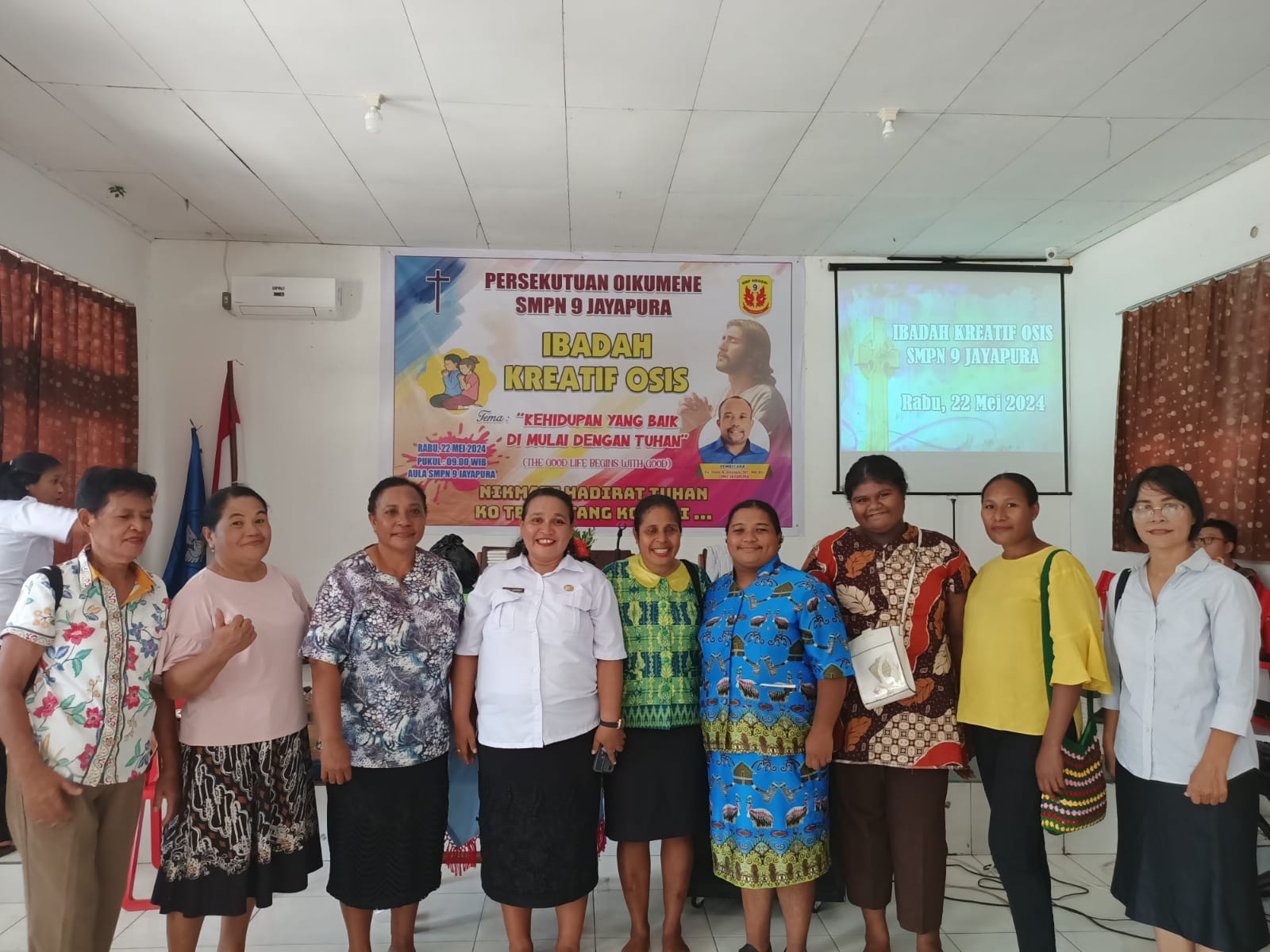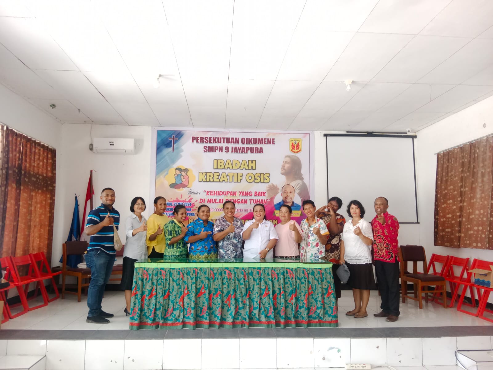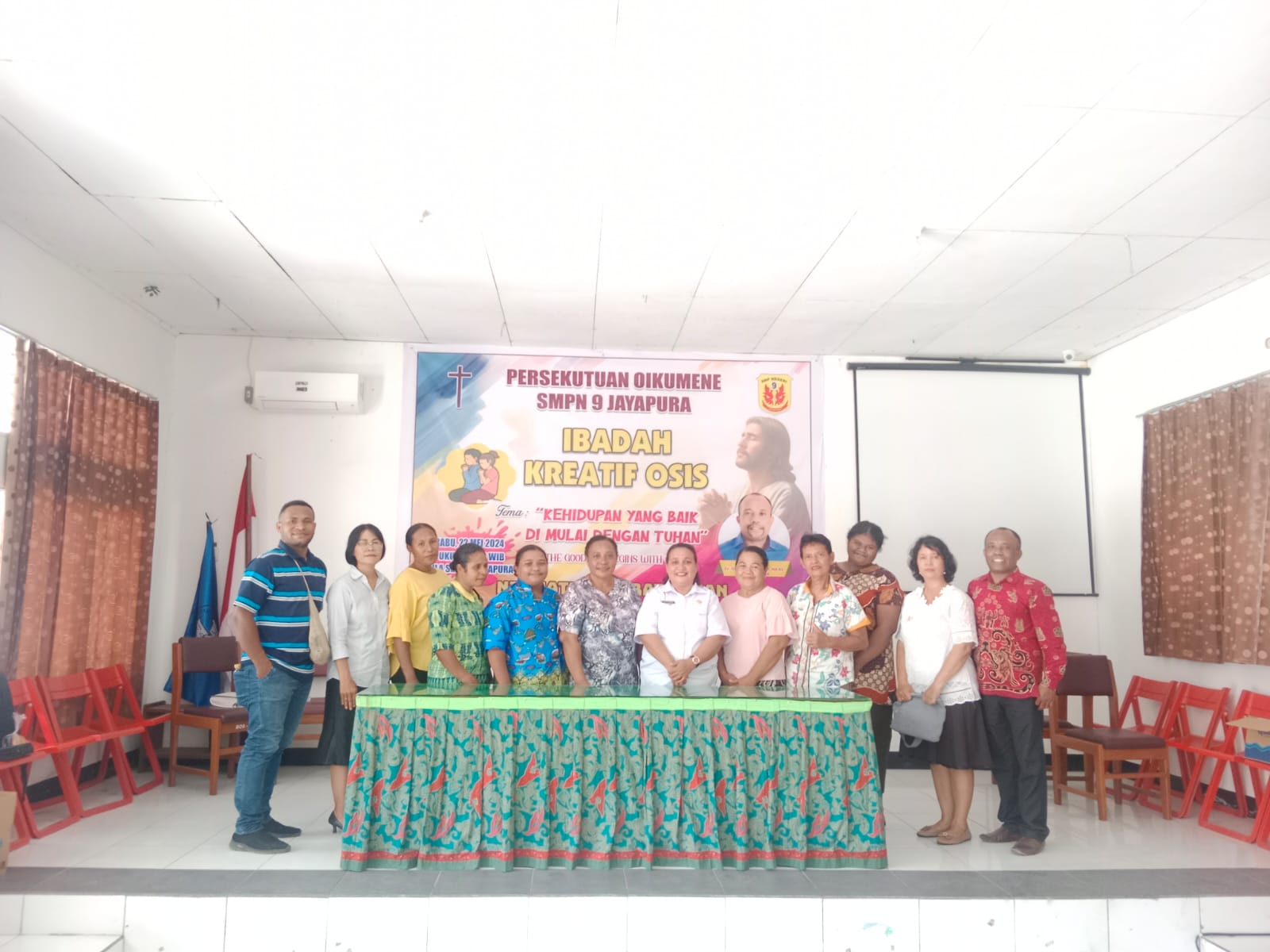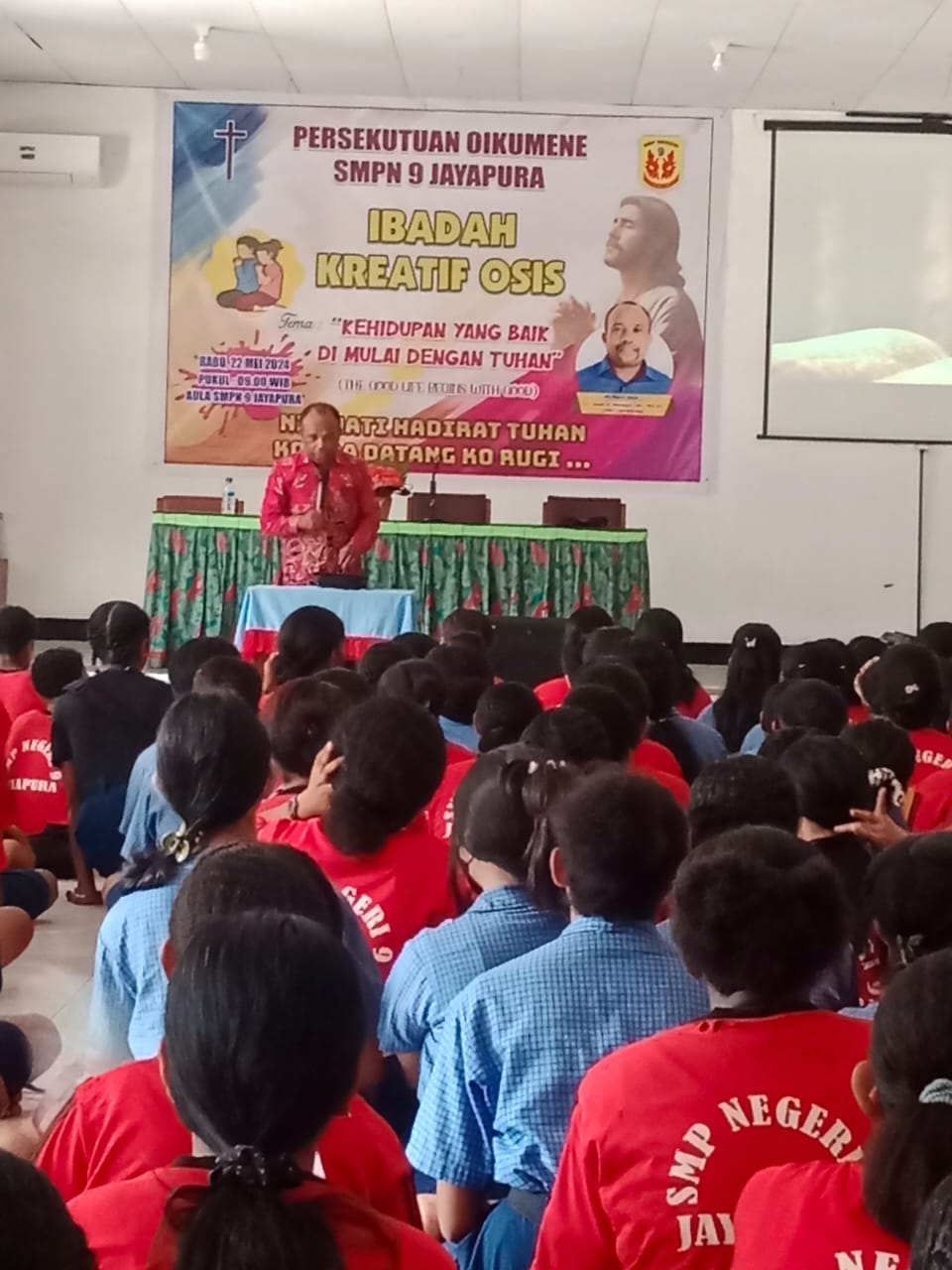 SMP Negeri 9 Jayapura_Pada hari Rabu, 22 Mei 2024, SMP Negeri 9 jayapura mengadakan kegiatan ibadah bersama dalam rangka persiapan menghadapi ujian kenaikan kelas 7 dan 8. Kegiatan ini diadakan di aula sekolah dan dihadiri oleh seluruh siswa kelas 7 dan 8 yang beragama kristen, beserta para guru dan staf sekolah.