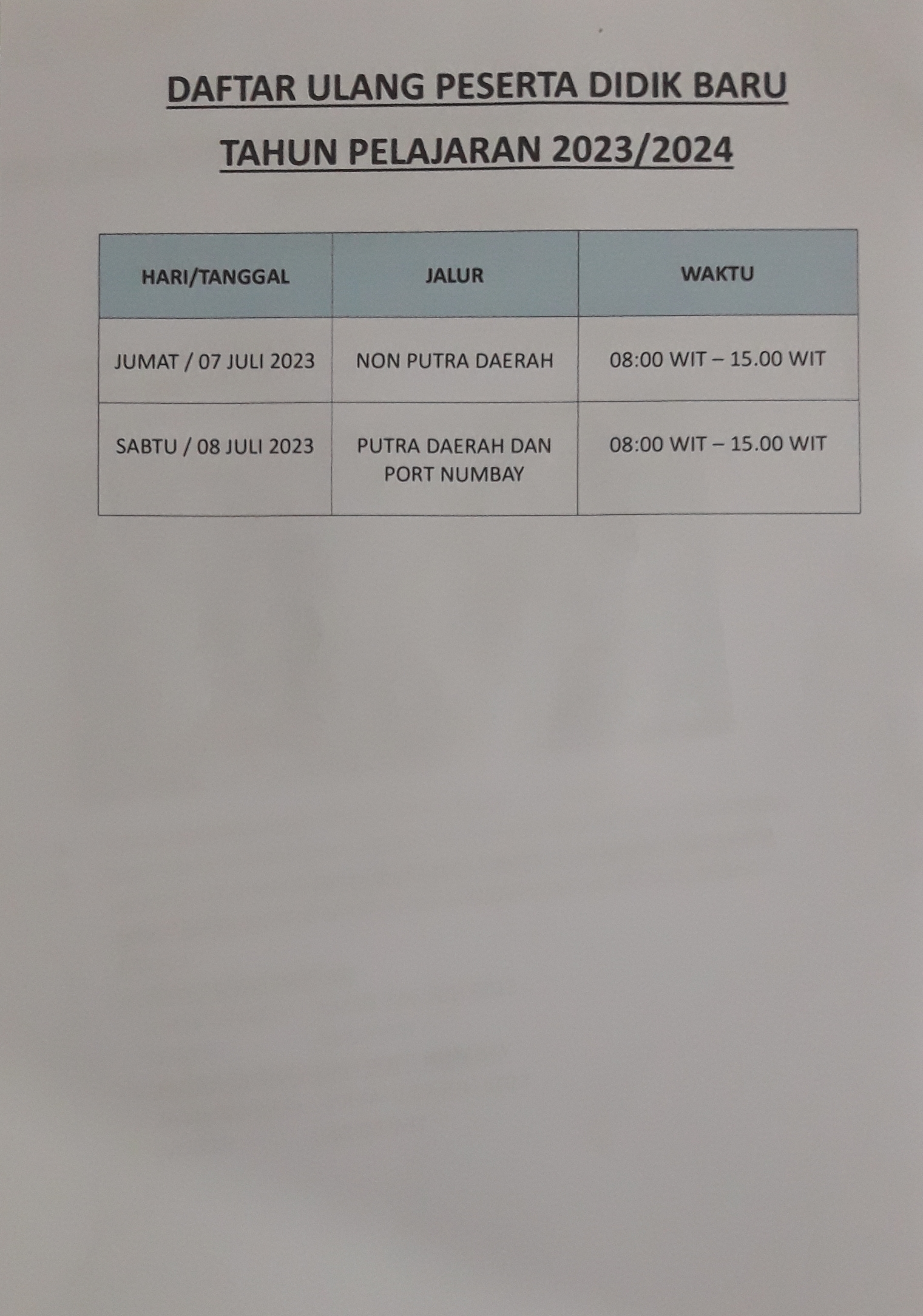 - Pendaftaran ulang pada tanggal 7 s/d 8 juli 2023