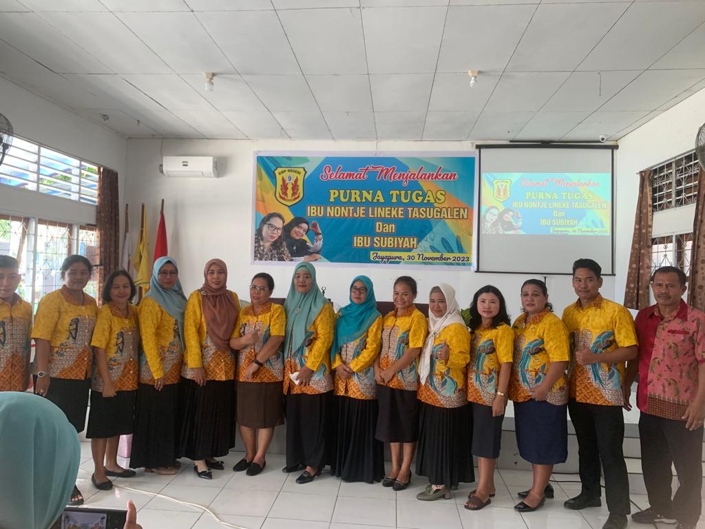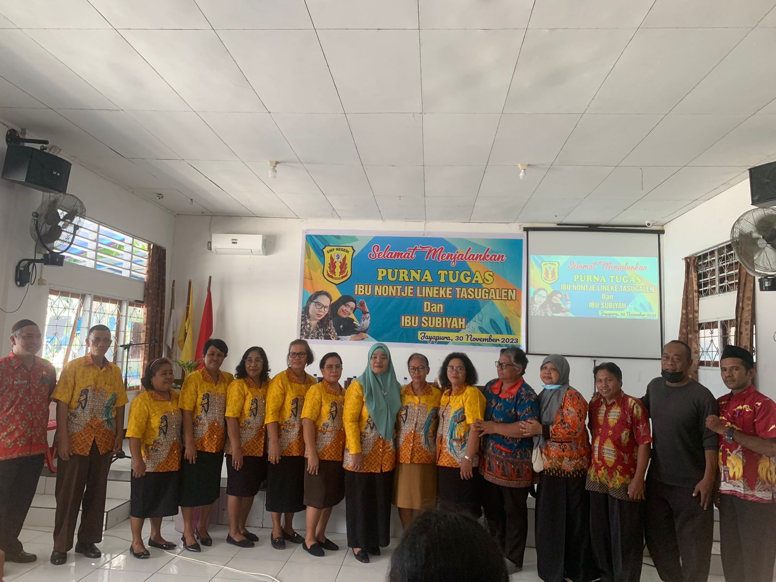 Kedua guru masa purna bakti yang jatuh pada tanggal 04 nopember 2023 yaitu Ibu Nontje (sebagai bendahara Komite) sedangkan Ibu Subiyah (guru) yang jatuh pada Tanggal 11 November 2023.