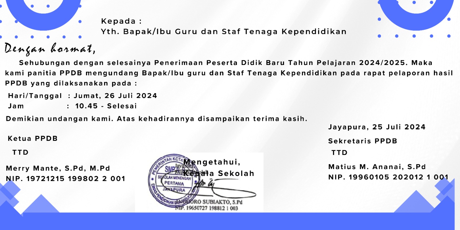 Demikian yang kami laporkan. ttd Panitia PPDB 2024.
