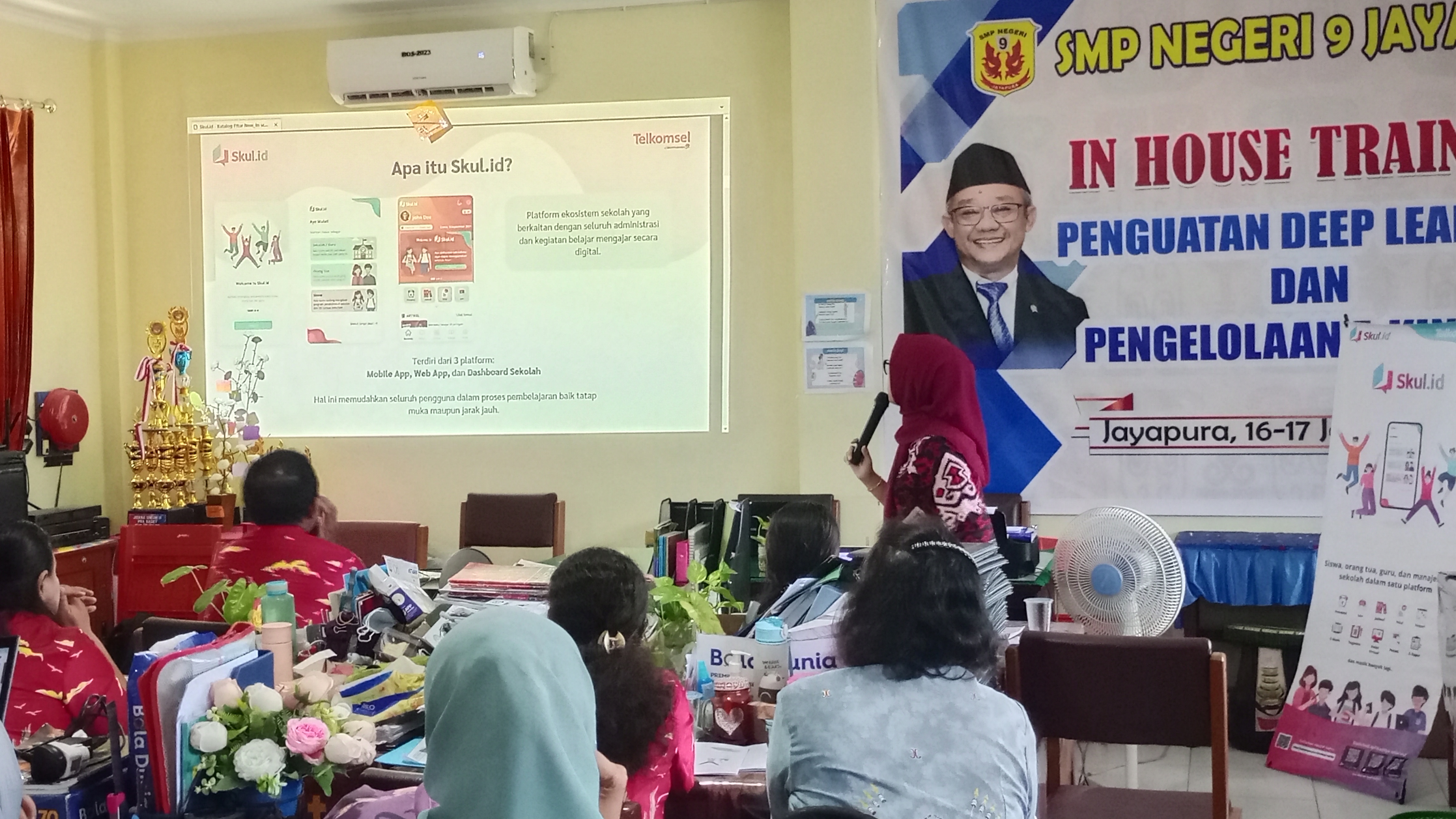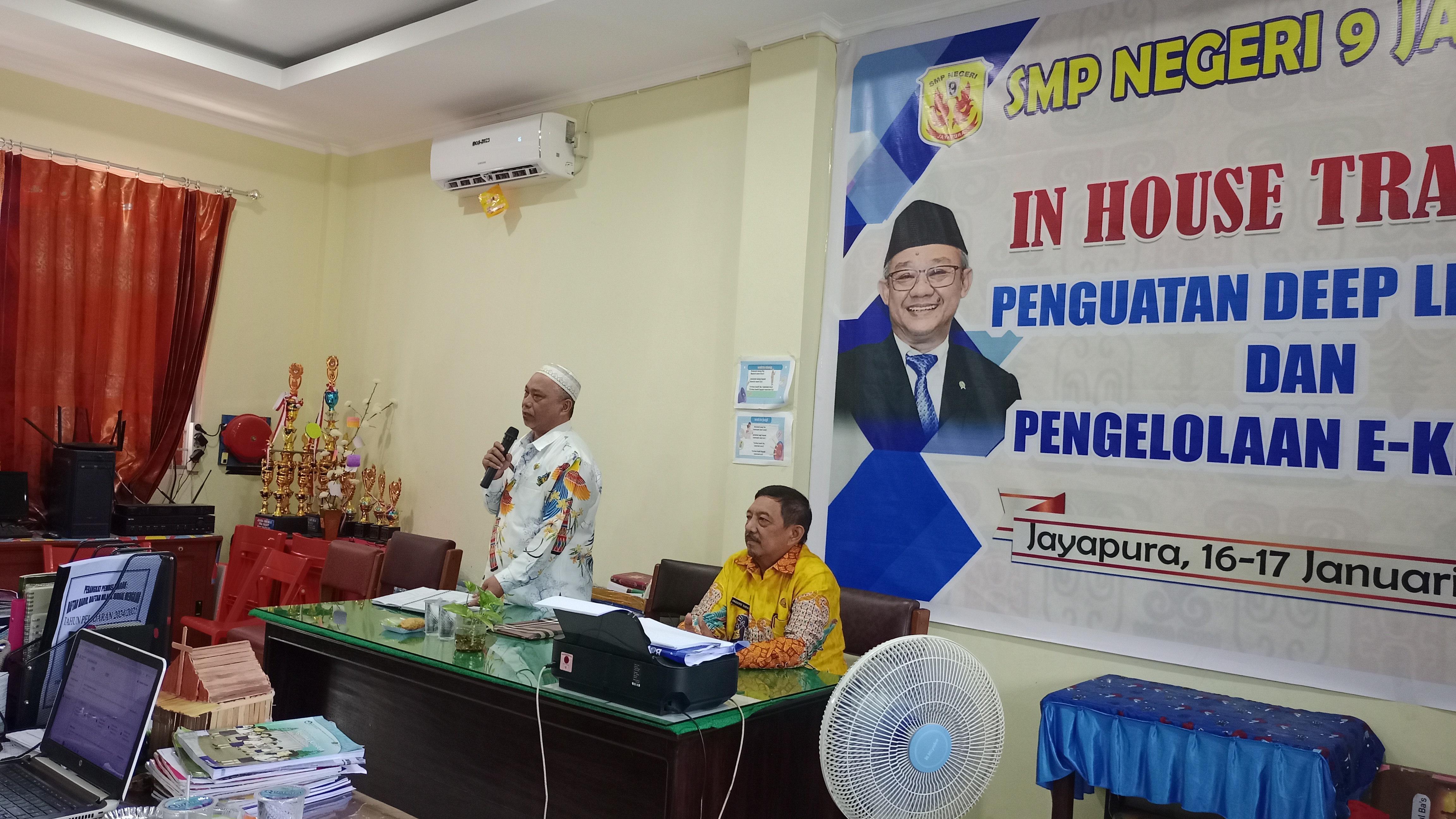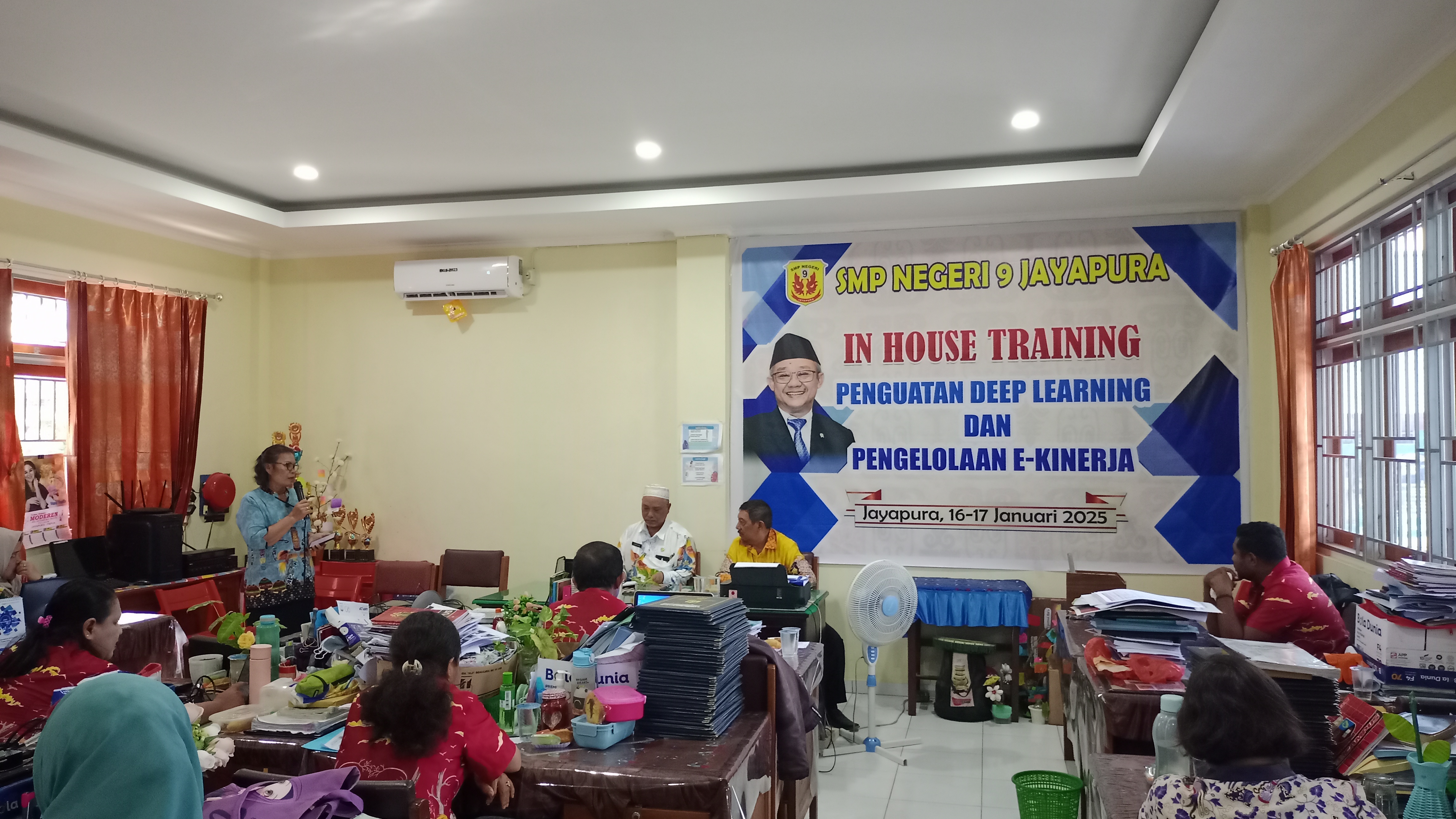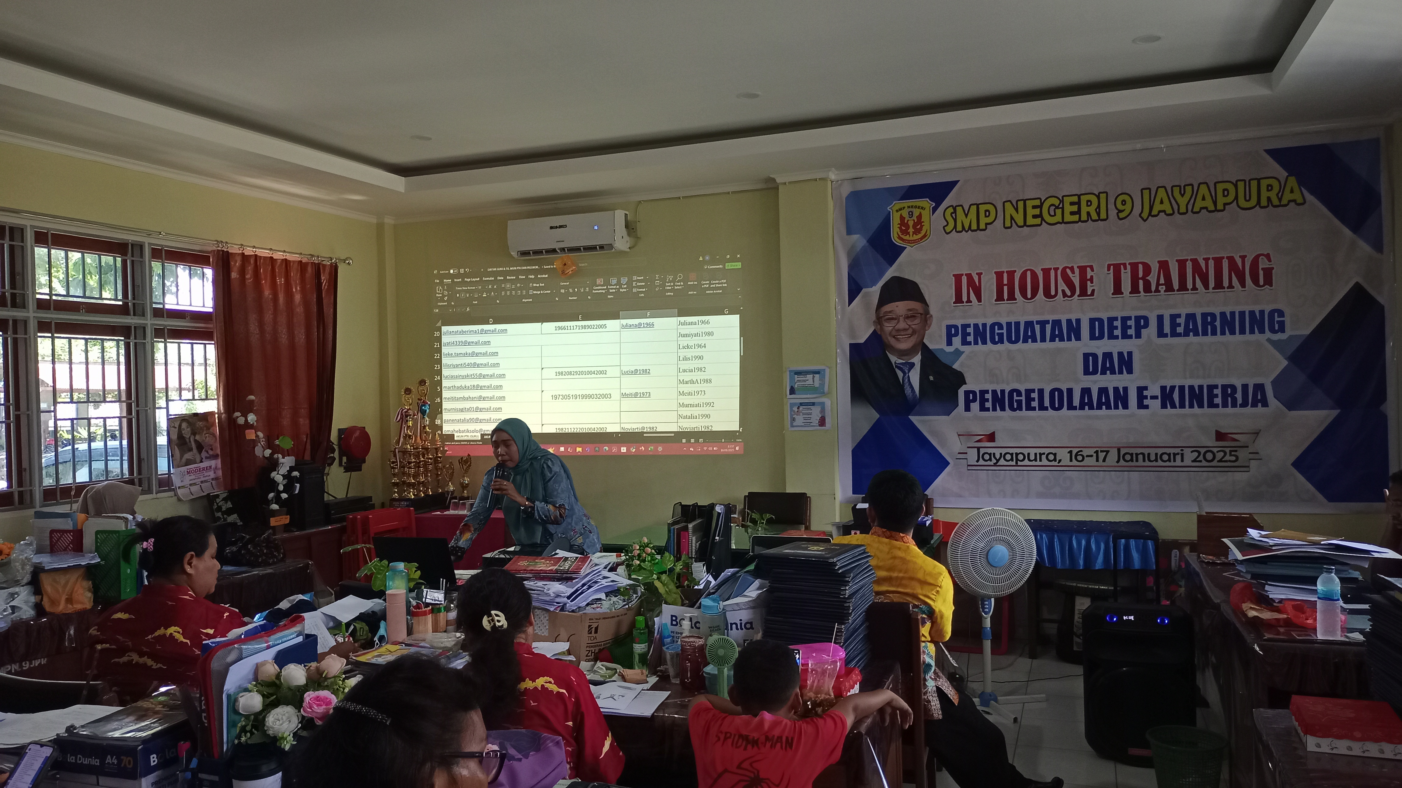 Jayapura, 17 Januari 2025 - Kegiatan In House Training (IHT) di SMPN 9 Jayapura memasuki hari kedua dengan menghadirkan pemateri dari Balai Guru Penggerak (BGP) Papua. Kegiatan ini bertujuan untuk meningkatkan pemahaman guru dalam penerapan Deep Learning serta penggunaan aplikasi E-Kinerja untuk mendukung efektivitas pengelolaan kinerja mereka.